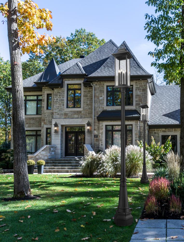 Brighten walkways and gardens with this transitional six-light outdoor post mount light. It features a lantern silhouette complete with a coastal black finish over aluminum, designed specifically to stand up to the elements. Clear seedy glass allows bright light while a flared cap and ring finial complete this engaging look.